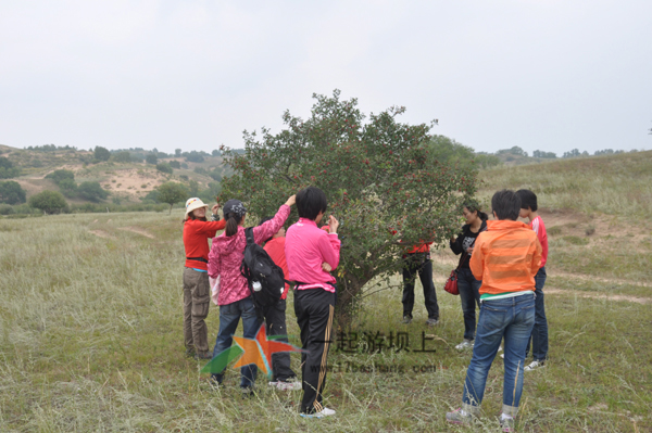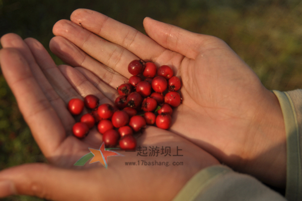 好多年没吃过面棠果了,没有变,只是依稀的记得那个味道,面面的,甜甜的,心里一阵兴奋,还记得小的时候这可是美味,每年一到这个时候可解了嘴馋了,有臭柳、地拖抹、刺铃,现在来说可都是纯天然的绿色食品,今天带了山东的妈妈团来玩,也带小孩子来采摘,可是不花钱的啊,哈哈!