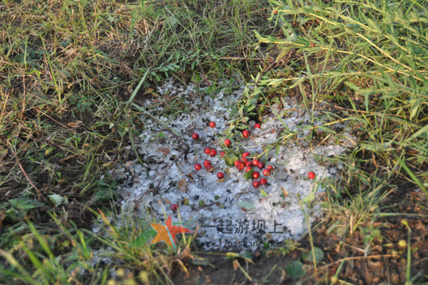 刚才下了雹子,看看砸到了好多果实,雨停了好长时间还有雹子